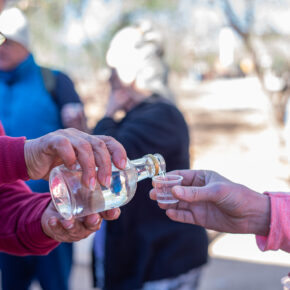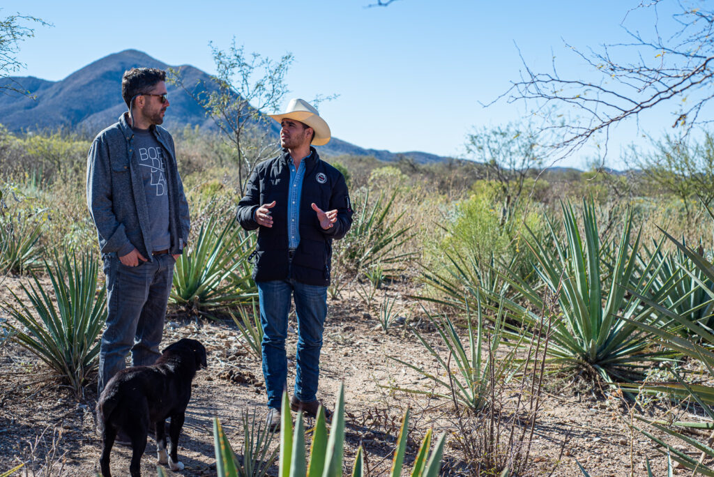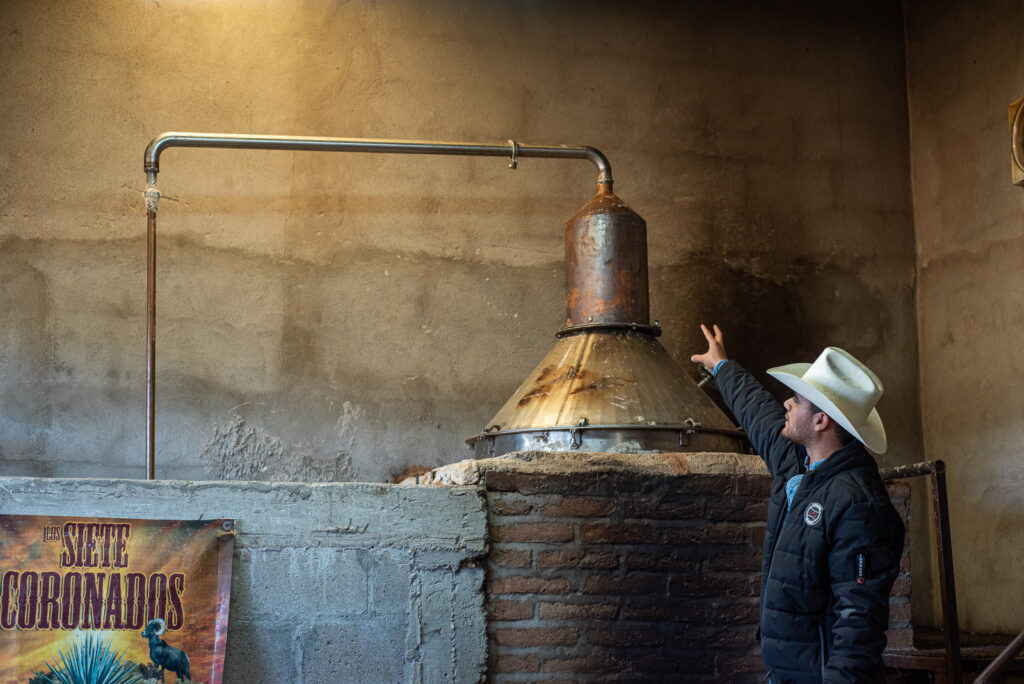 The next morning, we’re joined by Joan (Jo-AHN) Coronado, founder of Hermosillo’s La Ruta del Bacanora. Coronado’s paternal family makes bacanora under the label Siete Coronados; the vinata is a scheduled stop on select Borderlandia routes. He started his guided vinata tours out of the same desire as La Pierre, to create tourism and economic development in eastern Sonora. The men began working together in 2022 and have since developed seven bacanora routes that focus on Sonoran culture.